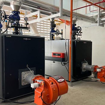 Turnkey superheated hot water IGOL boiler with complete piping and BALTUR gas burner systemOur Brand